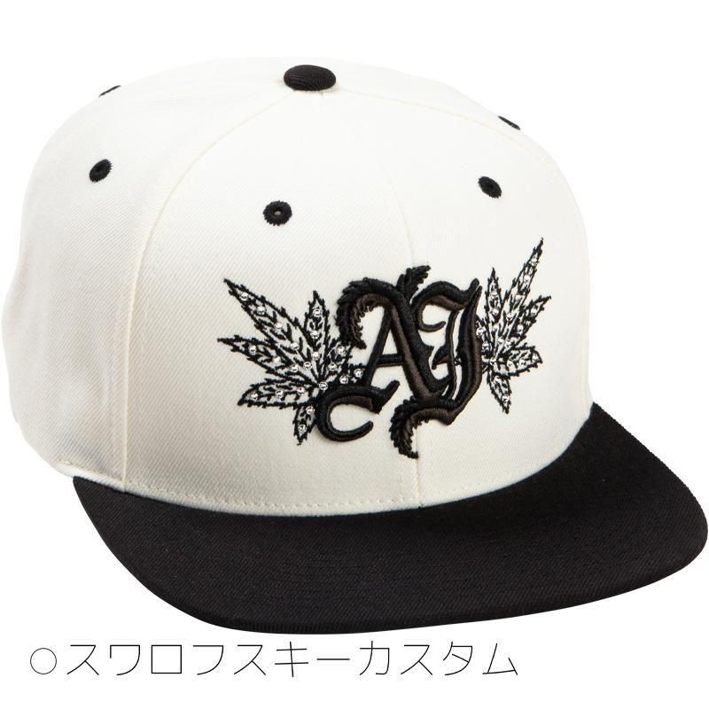 リーフデザインに落とし込んだAJロゴとウィードを組み合わせたデザインにスワロフスキーを施したデザイン。